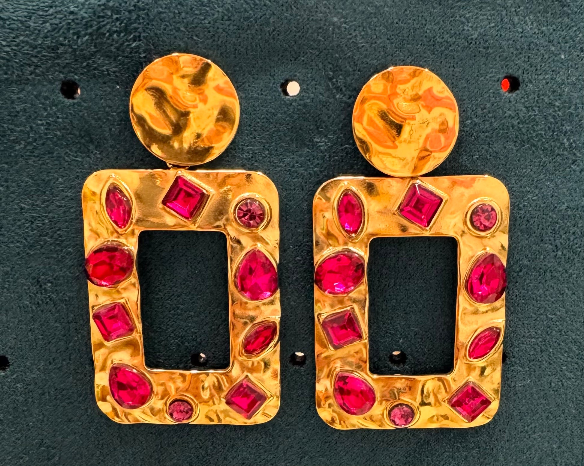 Dorados con detalle de brillantes en buganvilla( son de tuerca)